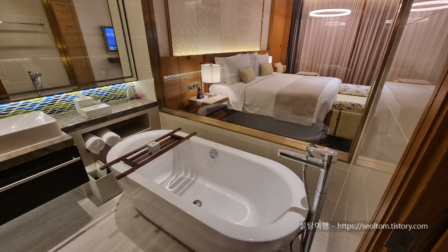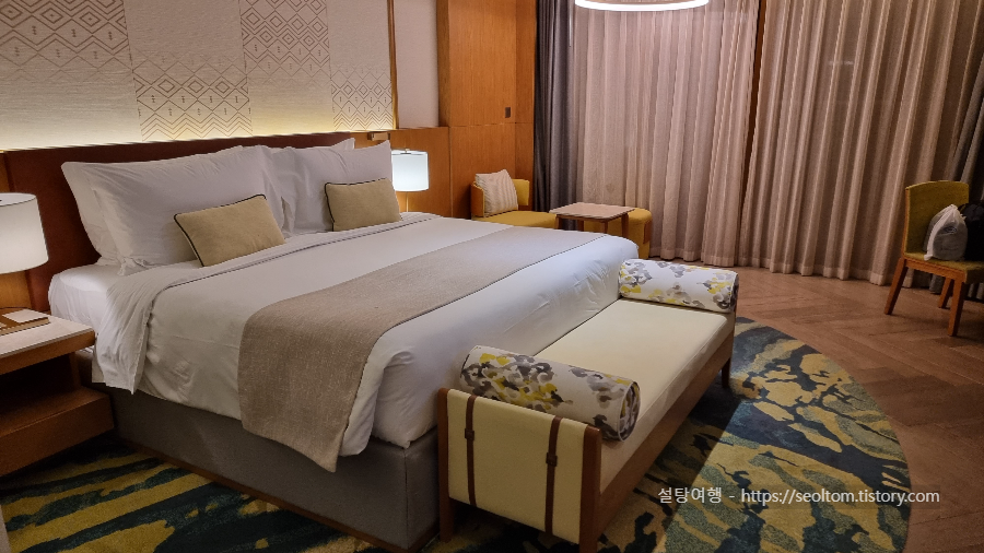 모벤픽 리조트 깜란은 다양한 객실 옵션을 제공하며, 특히 풀빌라는 프라이빗한 공간에서 여유로운 휴식을 원하는 여행객에게 적합합니다. 저희는 도착날 하루 머물다가 가는 숙소여서 디럭스 씨뷰 객실을 선택했습니다.