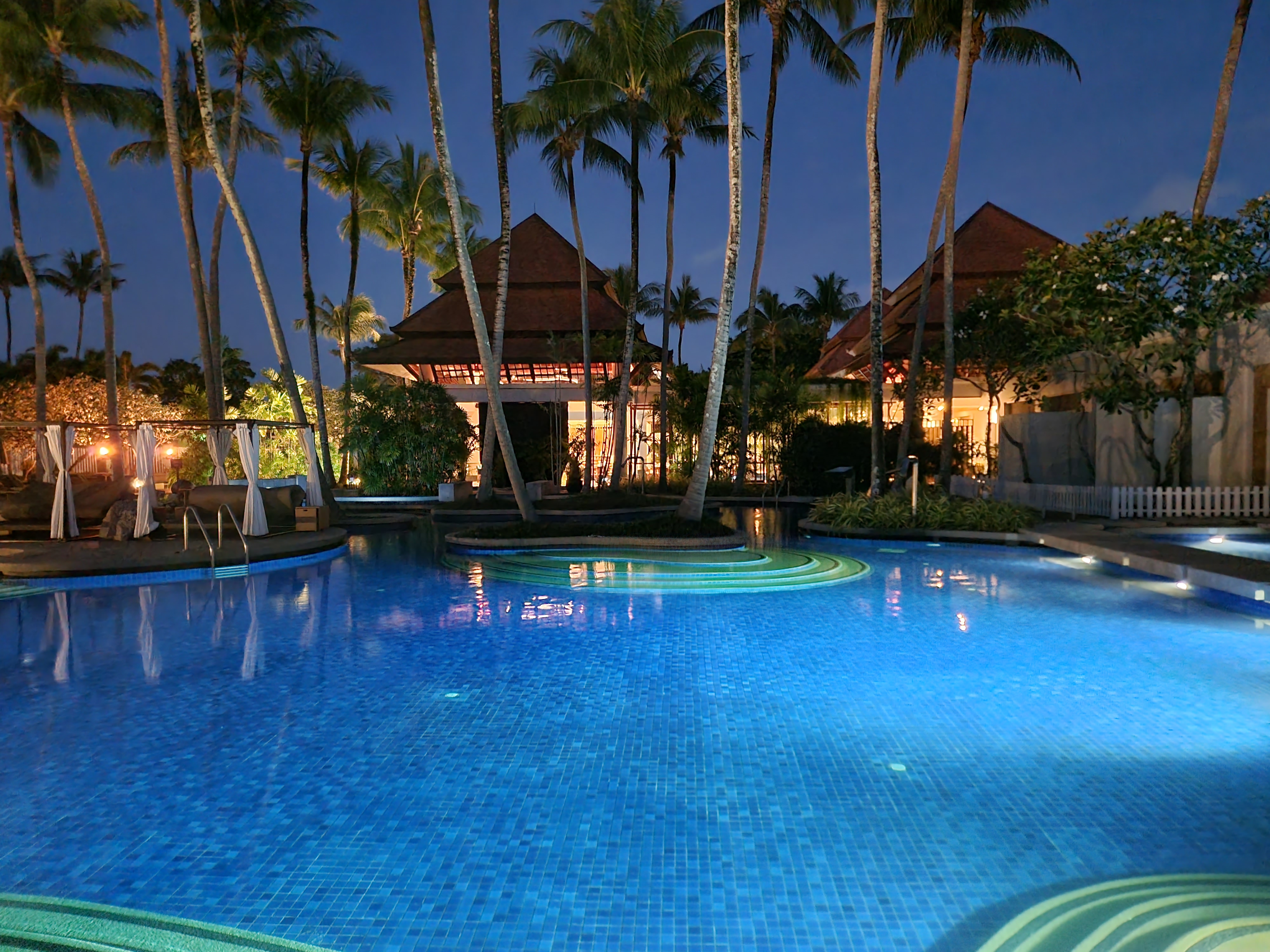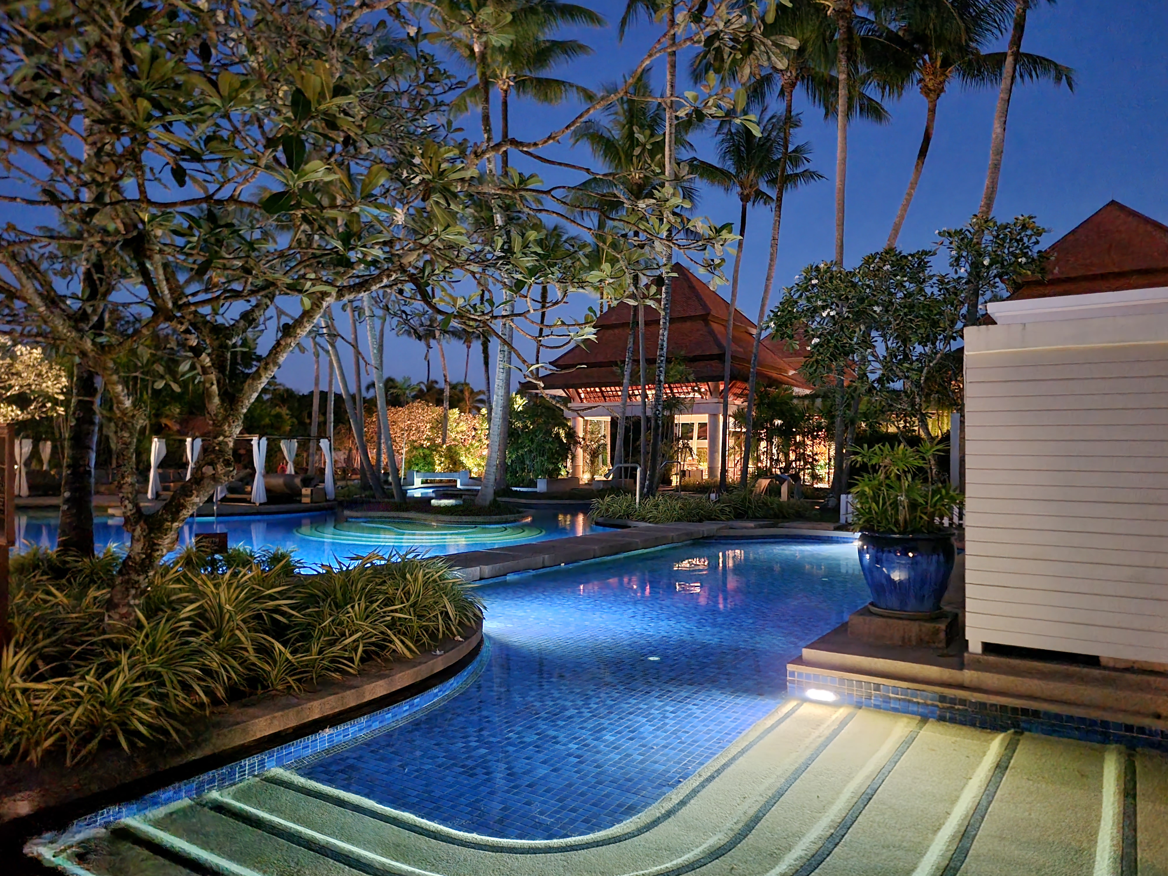 반얀트리 푸켓의 메인풀은 베야 로비 바로 앞의 길게 뻗은 수영장과 셔틀 보트 선착장 옆의 작은 유수풀을 가진 수영장으로 구분되고, 둘을 연결되어 있어 왔다갔다 할 수 있습니다. 물의 온도는 맑은날 기준 따뜻한 편이였기 때문에 수영을 즐기기에 아주 좋았습니다.