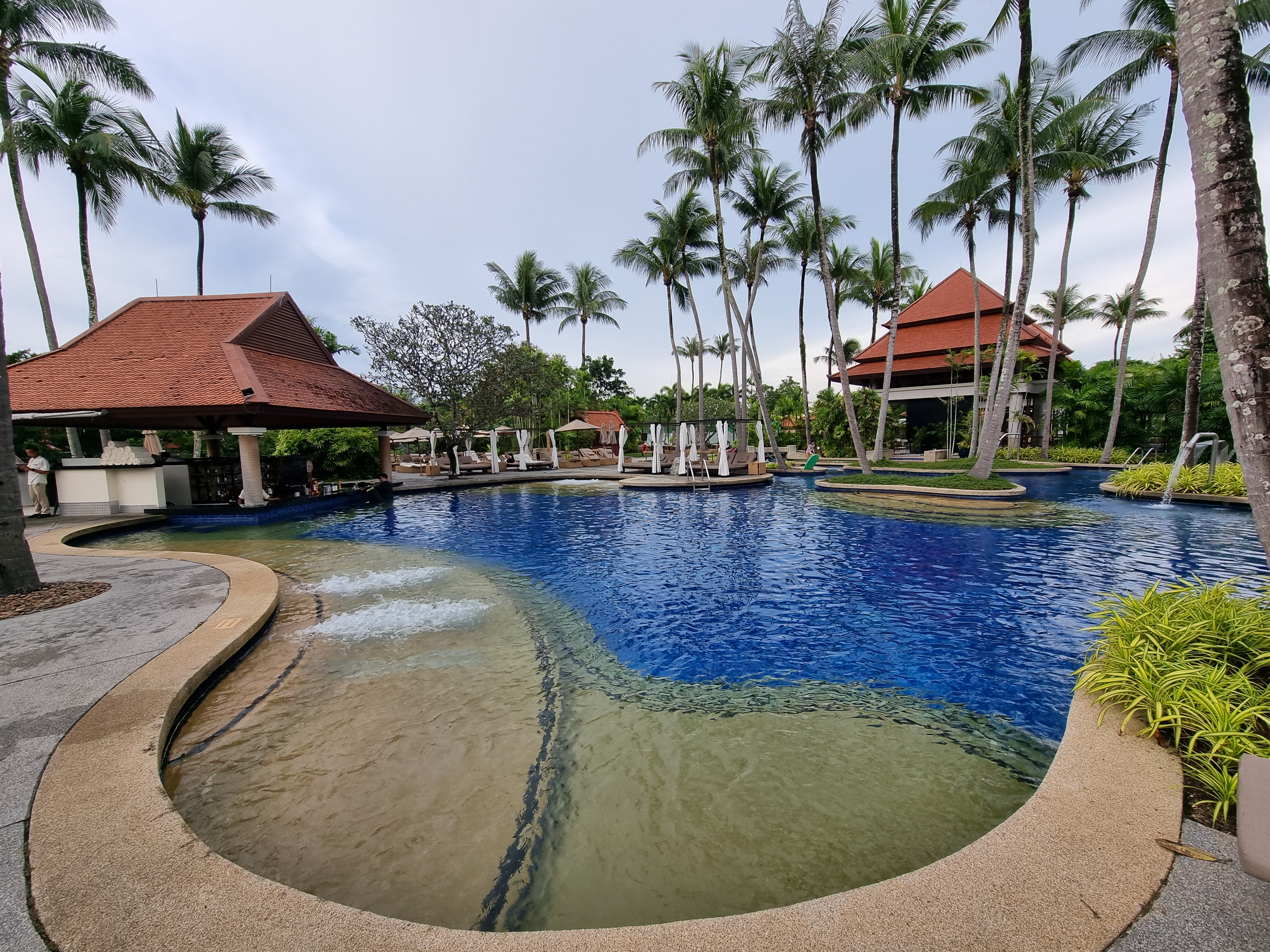 다음은 풀바가 위치해있는 유수풀을 가진 메인 수영장입니다. 여긴 둥글둥글하고 온종일 햇볕이 잘들어 따뜻한 수영을 즐길 수 있었습니다. 거기에 풀바가 위치해있기 때문에 많지는 않지만 항상 이용객이 있었습니다.