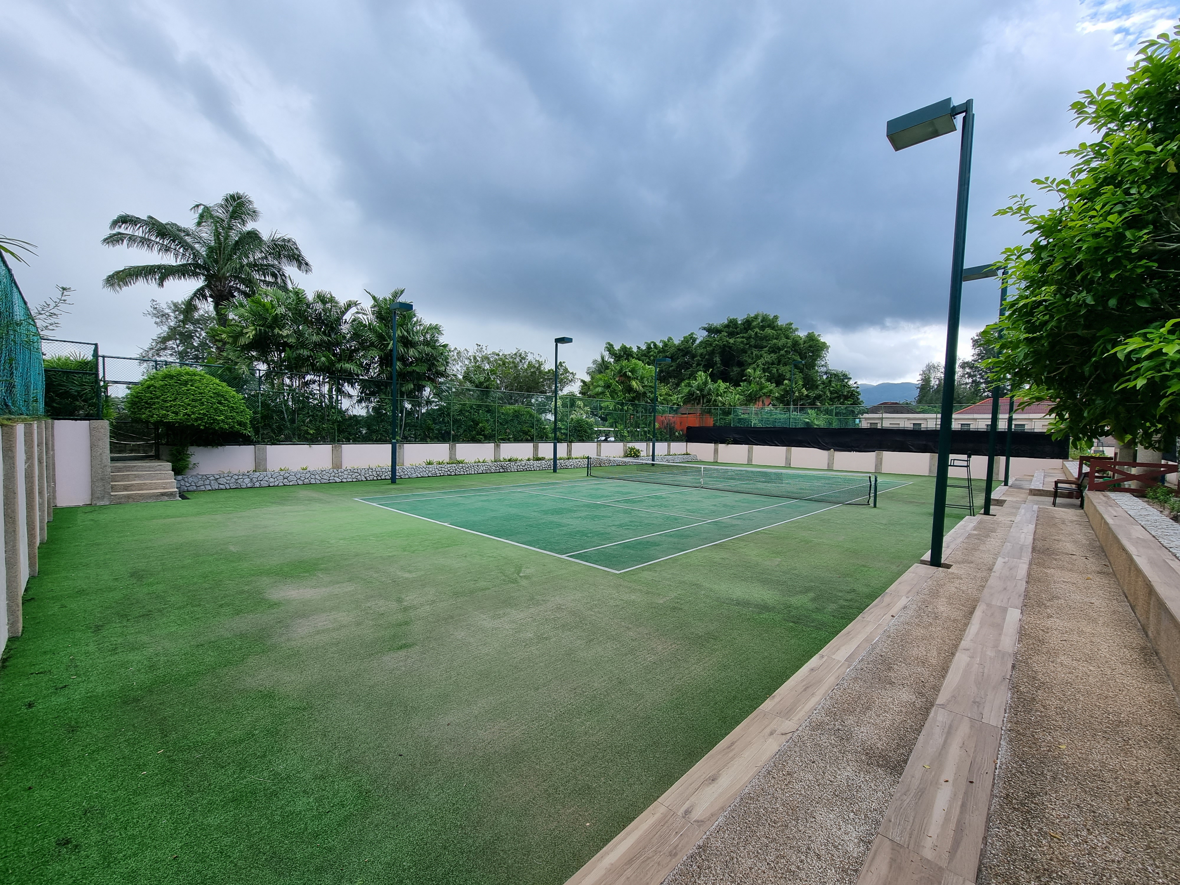 반얀트리 푸켓에는 테니스장도 있는데, 무료 3개의 잔디 구장?이 있습니다. 라켓이 없으면 위의 자전거 대여소에서 빌릴 수 있다고 합니다. 날씨 때문인지 저가 방문한 오후 시간대에는 이용객이 없었습니다. 테니스를 좋아하시는 분들은 반얀트리 푸켓의 멋진 테니스장을 이용해보세요.