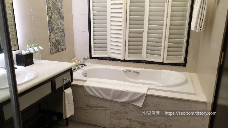 욕실에는 별도의 욕조와 샤워부스가 구비되어 있었으며, 어메니티는 자체 브랜드로 상쾌하고 자극이 적었습니다.