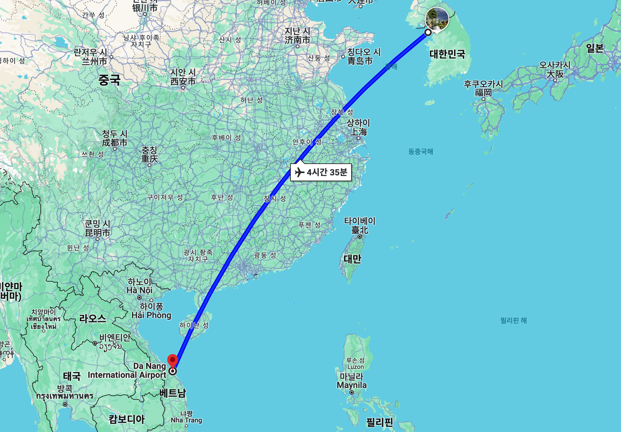 한국에서 다낭까지 얼마나 걸리나요?