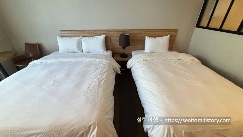 저는 스탠다드 더블룸에 머물렀습니다. 객실 문을 열고 들어선 순간, 가장 먼저 눈에 띈 것은 탁 트인 공간감과 청결한 상태였습니다. 객실은 생각보다 넓었으며, 따뜻한 조명과 우드톤 인테리어가 어우러져 아늑한 분위기를 연출했습니다. 침대는 적당한 쿠션감과 포근한 침구 덕분에 하룻밤 내내 꿀잠을 잘 수 있었습니다. 이불과 베개 커버는 깨끗하게 세탁되어 있었고, 매트리스 또한 흠잡을 곳 없이 깔끔했습니다.