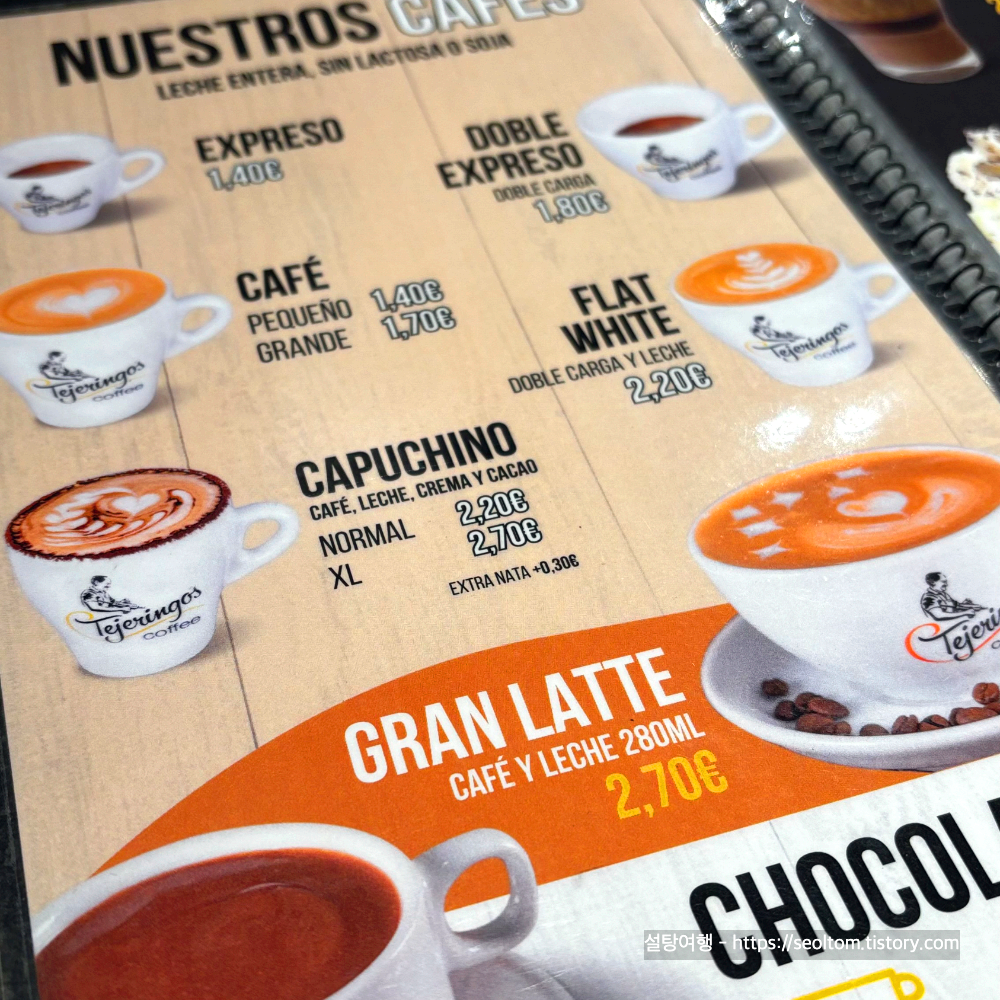 론다에서는 안달루시아 요리와 신선한 타파스를 즐길 수 있어요. 특히, 감바스 알 아히요(마늘 새우)와 스페인 오믈렛(토르티야)은 필수로 맛봐야 할 메뉴입니다. 저는 사전에 조사도 없이 가서 그냥 호텔 앞, Tejeringo´s Coffee Ronda 카페에서 샌드위치와 맛나는 라떼로 식사를 떼웠던거 같습니다.