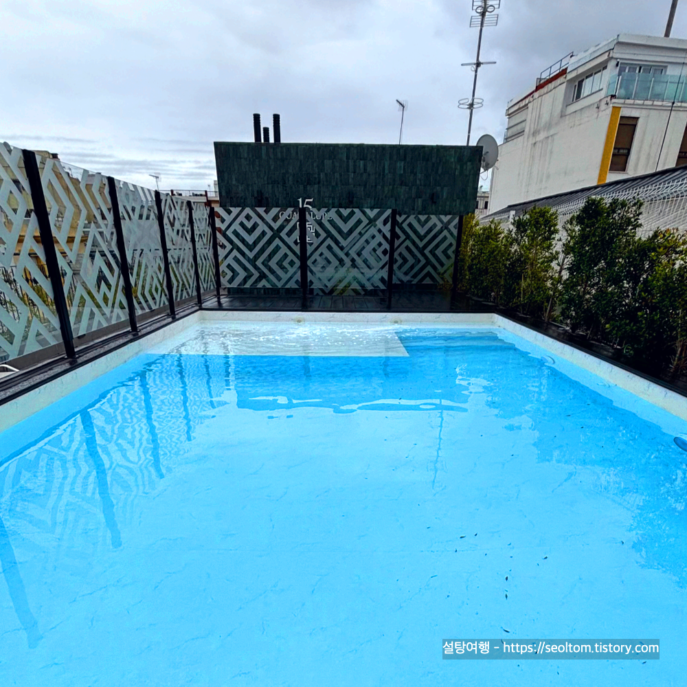 그리고 루프탑에는 아래와 같이 조그만한 수영장과 썬베드가 있어 더운 여름의 더위를 잠깐 식히기에 좋았던 것 같습니다. ,